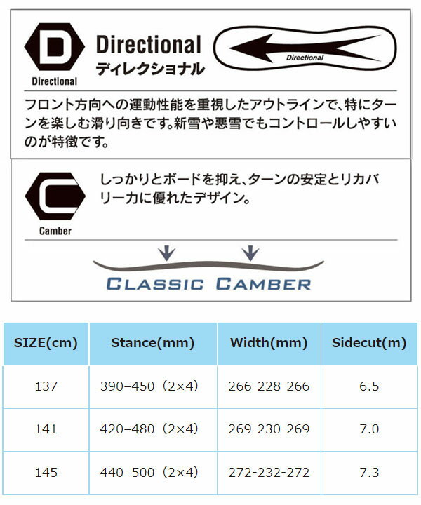 適度なロッカーは、「逆エッジ」などのマイナス要素を軽減し、やや荒れ気味のゲレンデでも使いやすいボードです。
