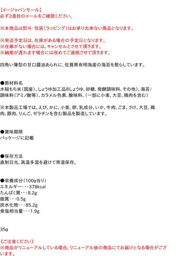 [関連キーワード:お菓子 米菓 煎餅 おかき 海苔 なにわせんまい]まとめ買いはコチラ(激安ケース) >>【イージャパンショッピングモール】内のみのお買い物は、送料一律でどれだけ買っても同梱する事が出来ます。