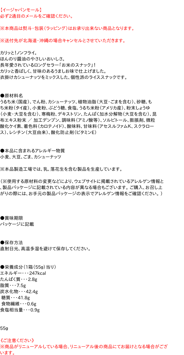 [関連キーワード:お菓子 おやつ スナック スナック菓子 ぴっから お米 こめ カシューナッツ ノンフライ 軽い]まとめ買いはコチラ(激安ケース) >>【イージャパンショッピングモール】内のみのお買い物は、送料一律でどれだけ買っても同梱する事が出来ます。
