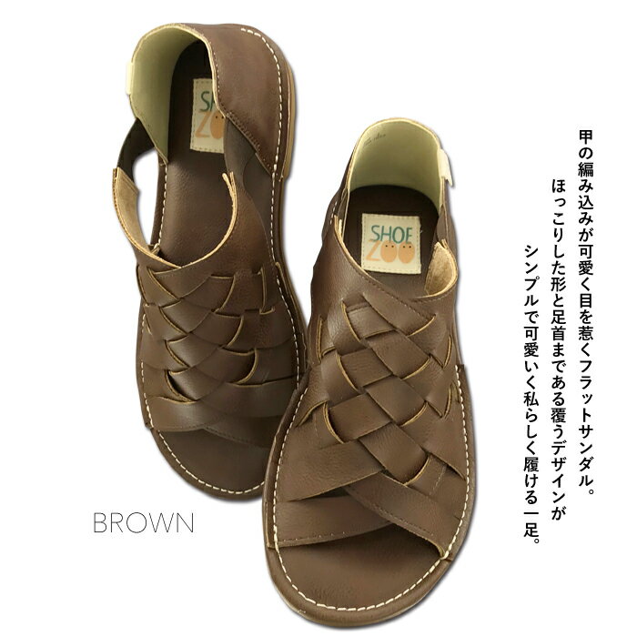 甲の編み込みが可愛く目を惹くフラットサンダル。